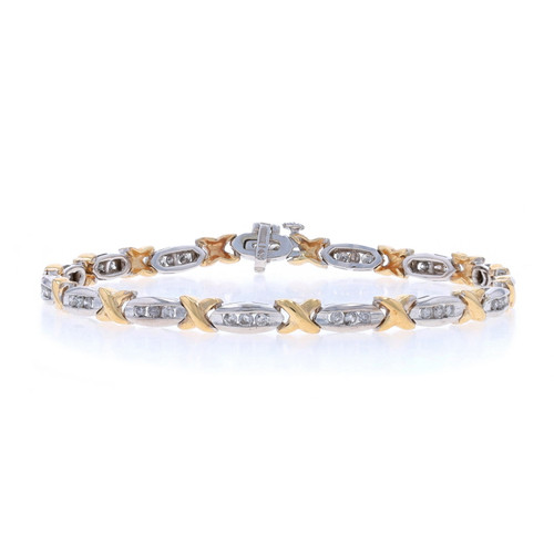 White Gold Diamond Link Bracelet 7 1/4" -14k Round Brilliant 1.00ctw Channel Set