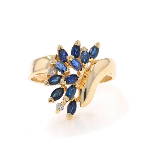EFFY Sapphire Diamond Cluster Cocktail Bypass Ring Yellow Gold 14k Marq 1.48ctw