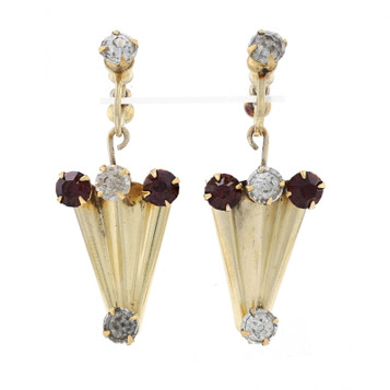 Eisenberg was a purveyor of high end jewelry starting in the 1930s. The back of the brooch is stamped with the makers mark that was one of the first used by the company (circa 1930-1934) but research shows while this is still an Eisenberg original, the 1930s date could be later. The set includes a pair of screw back earrings and a brooch, each having a chunky design set with shimmering Austrian Crystals of various shapes and sizes.