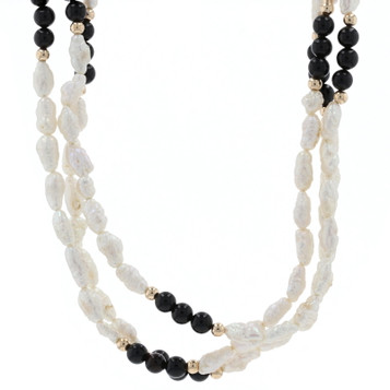 Freshwater Keshi Pearl Necklace 29" - 14k Yellow Gold Knotted Five-Strand