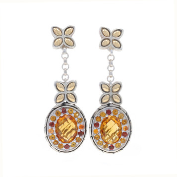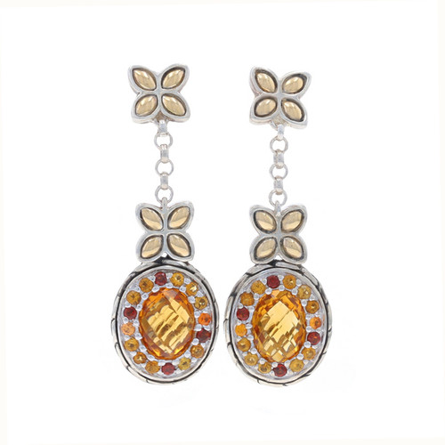 John Hardy Batu Kawung Citrine Halo Dangle Earrings Sterling 925 Yellow Gold 18k