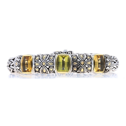John Hardy Citrine Three-Stone Station Bracelet 6 1/4" - Sterling 925 & Gold 18k