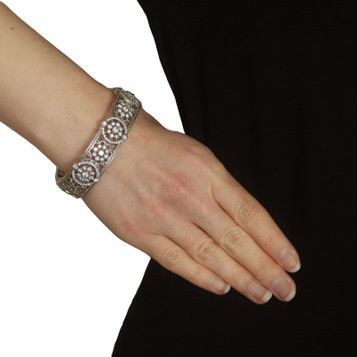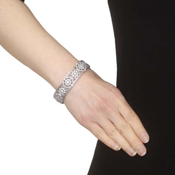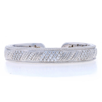 Judith Ripka Cubic Zirconia Hinged Cuff Bracelet 6 3/4" Sterling Silver 925 Rope