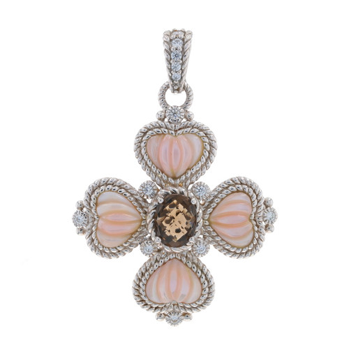 Judith Ripka MOP Smoky Quartz Cubic Zirconia Heart Cross Enhancer Pendant 925