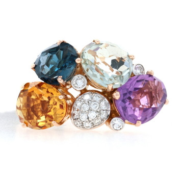 Kallati Amethyst Citrine Quartz Diamond Cluster Ring Yellow Gold 18k 3.15ctw