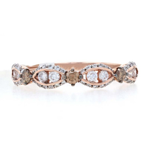 Kallati Fancy Brown Diamond Band Rose Gold 14k Round .50ctw Scallop Wedding Ring