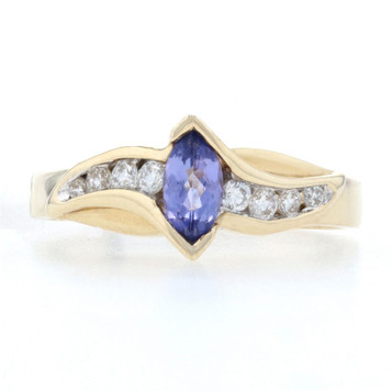 Kallati Tanzanite & Diamond Bypass Ring - Yellow Gold 9k Marquise Cut .50ctw