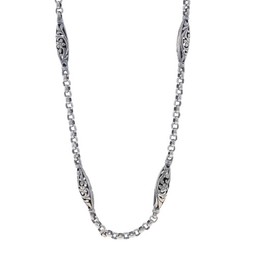 Konstantino Scrolling Flower Station Necklace 38" - Sterling Silver 925 Garnet
