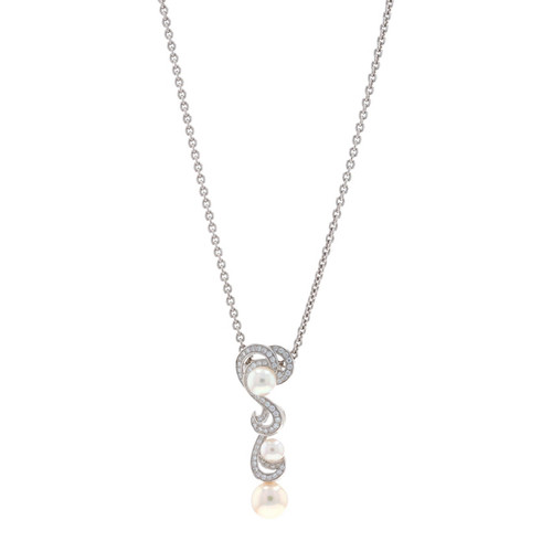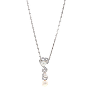 Mikimoto Laguna Akoya Pearl Diamond Necklace - White Gold 18k .40ctw Adjustable
