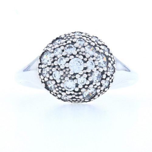 This beautiful ring would make a perfect addition to your collection! We recently bought out a jewelry store that was an authorized Pandora dealer, and this piece is guaranteed NEW and 100% authentic. The sterling silver piece is titled Cosmic Stars, and is fashioned into an elegant cocktail style which showcases a shimmering cluster of clear cubic zirconias with a polished finish. This ring is stamped 925, and is Pandora item number 190914CZ.