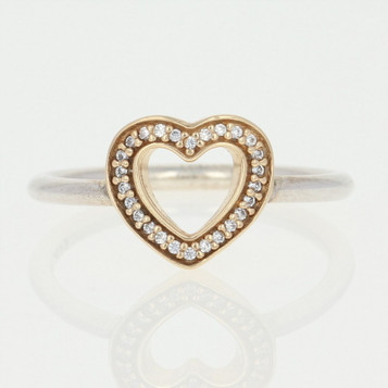 NEW Authentic Pandora Symbol of Love Ring Ster & 14k Gold 52 (6) Heart 190925CZ