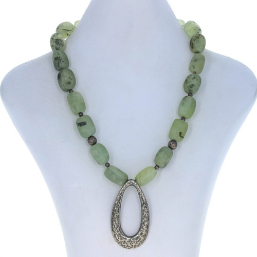 Silpada Sterling Silver Green Prehnite Statement Necklace - N1806 Hammered Retired