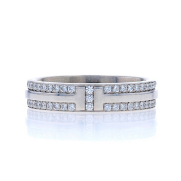 Tiffany & Co. T Narrow Pave Diamond Band -White Gold 18k Rd .45ctw Ring Sz 6 1/2