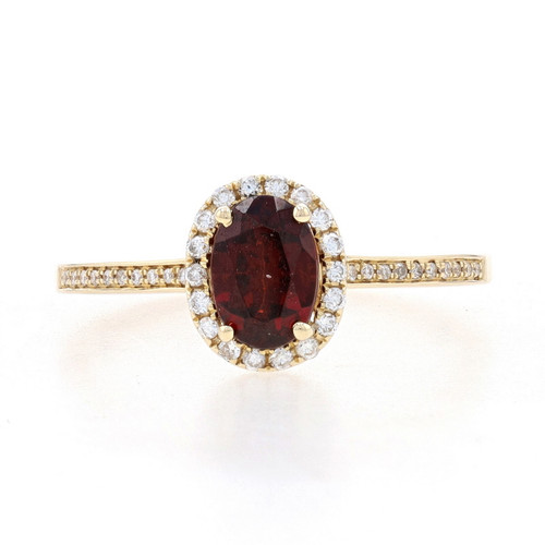 Yellow Gold Garnet & Diamond Halo Ring - 14k Oval 1.15ctw