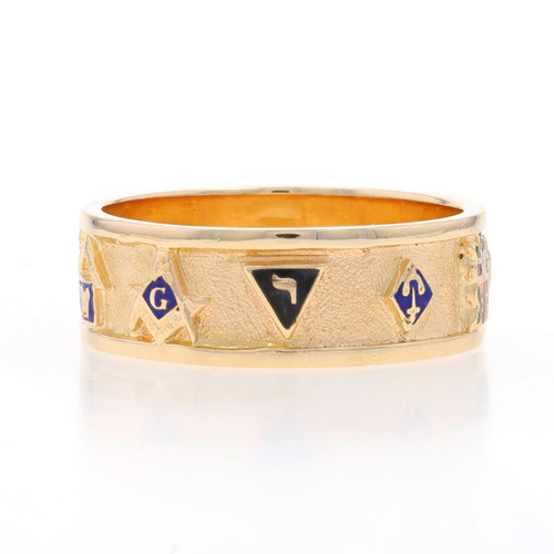 Yellow Gold Masonic Symbols Band - 14k Blue Lodge Shriners Yod Ring 13 3/4