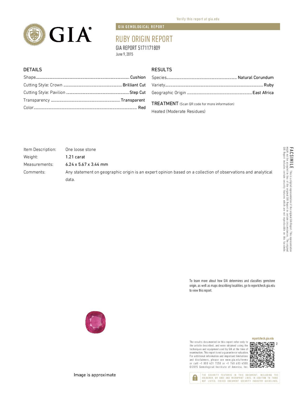 Loose Ruby - Cushion Cut 1.21ct GIA Red Solitaire