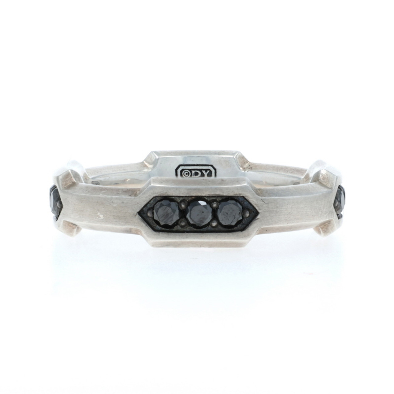 David Yurman Faceted Black Diamond Men's Station Band Ster 925 Ring 10 Treated
