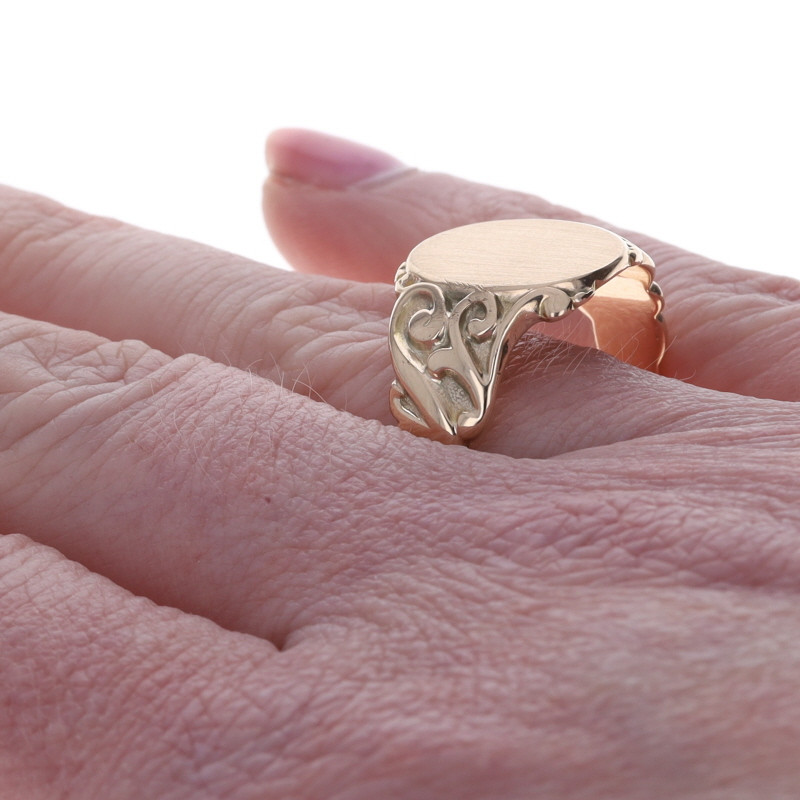 Yellow Gold Art Deco Signet Bypass Men's Ring - 10k Vintage Engravable