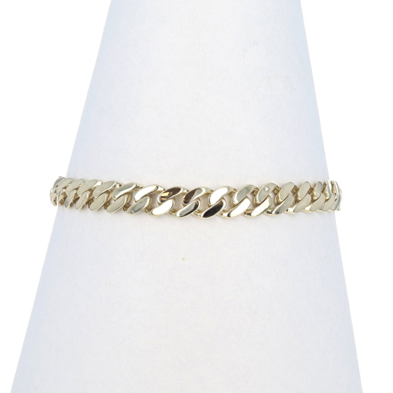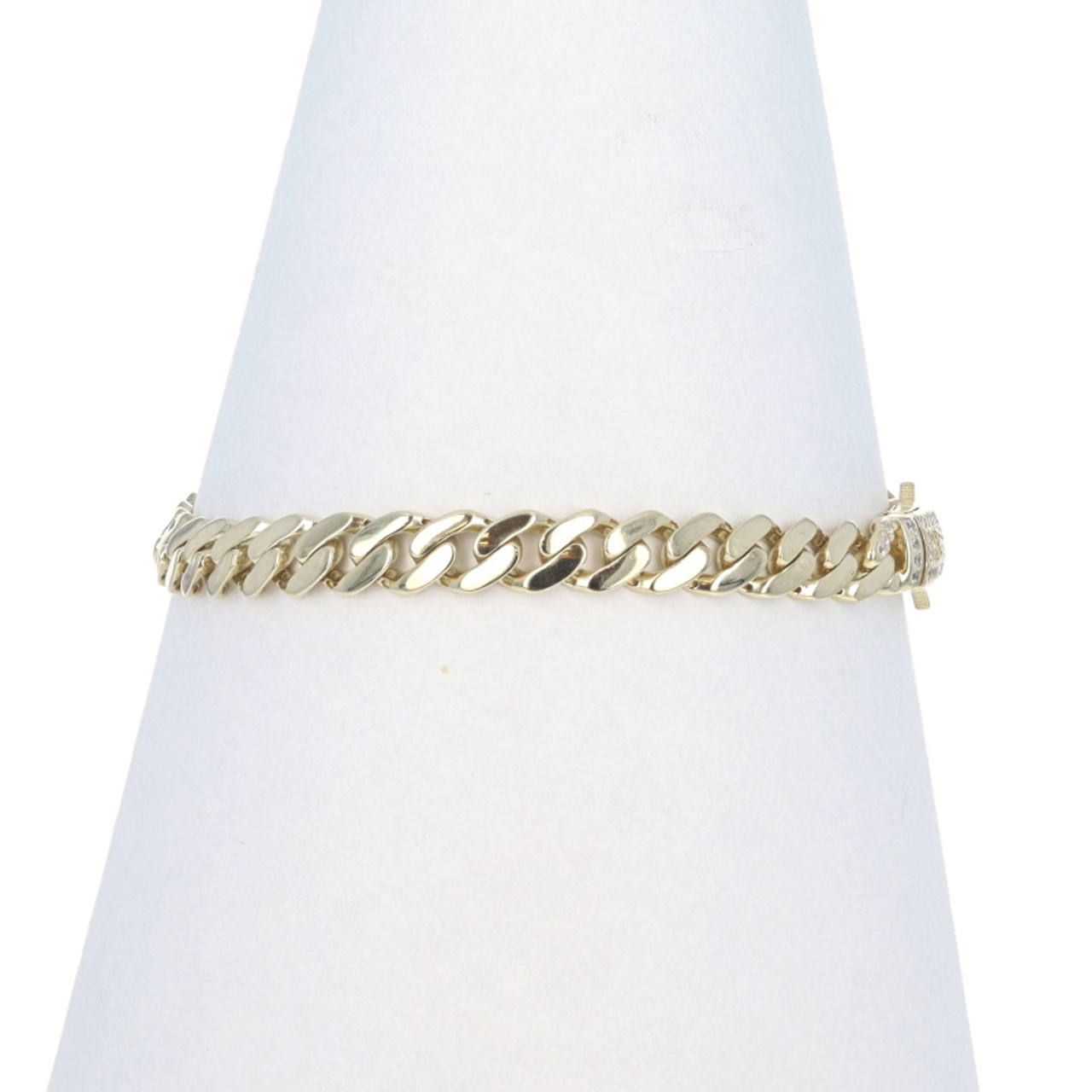 Yellow Gold Cubic Zirconias Curb Chain Men's Bracelet 7" 14k Round .25ctw