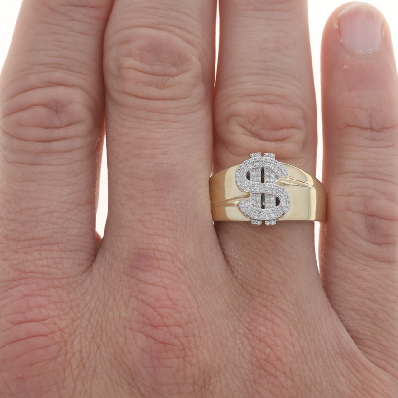 Yellow Gold Diamond Dollar Sign Mens Ring 10k Single .25ctw Money SZ 10 1/4