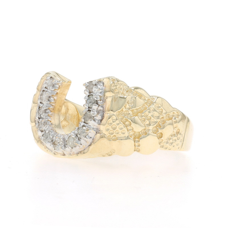 Yellow Gold Diamond Horseshoe Men's Ring - 10k Rd.22ctw Equestrian Good Luck