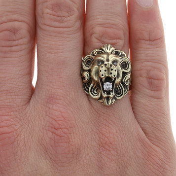 Yellow Gold Diamond Horseshoe Men's Ring - 10k Rd.22ctw Equestrian Good Luck
