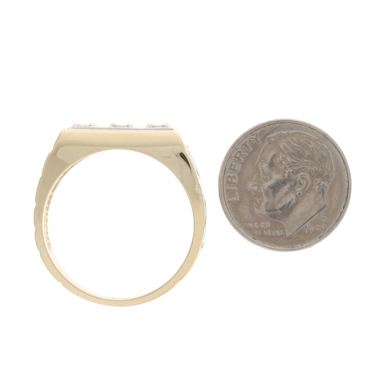 Yellow Gold Diamond Men's Ring - 10k Round Brilliant .25ctw Three-Stone Nugget