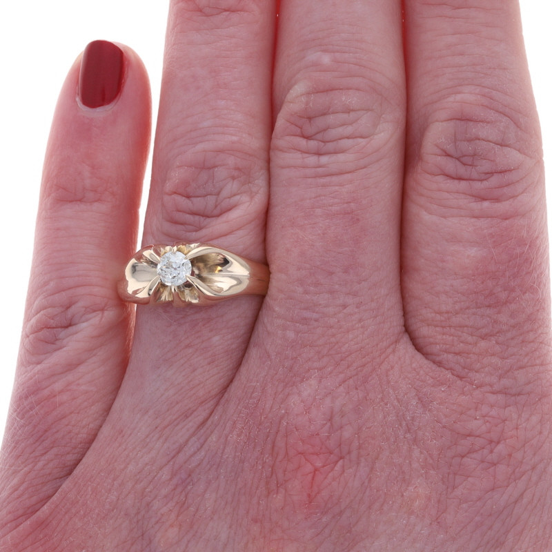 Yellow Gold Diamond Vintage Men's Ring - 10k Mine .38ct Solitaire