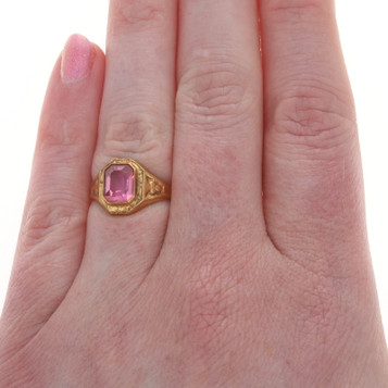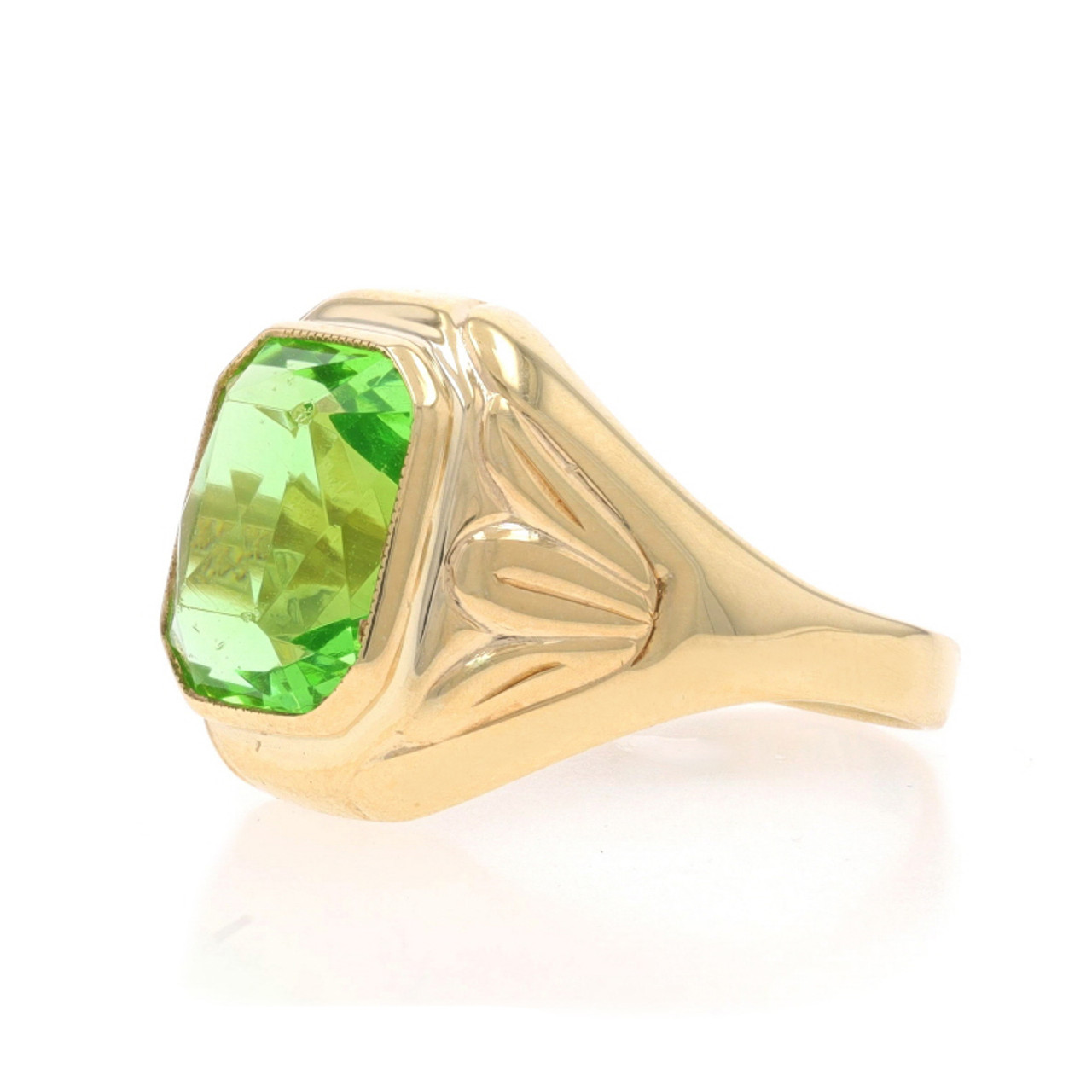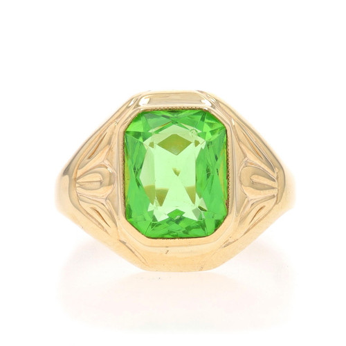 Yellow Gold Glass Vintage Men's Ring - 10k Rectangular Solitaire
