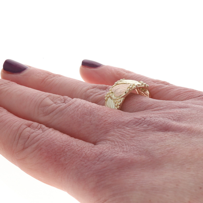 Yellow Gold Grape Clusters & Leaves Black Hills Gold Men's Ring - 10k Band