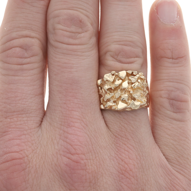 Yellow Gold Men's Nugget-Textured Ring - 14k Statement