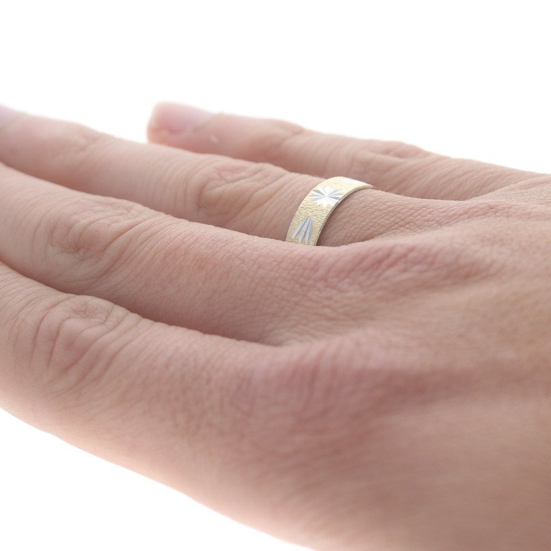 Yellow Gold Men's Wedding Band - 14k Etched Star Ring