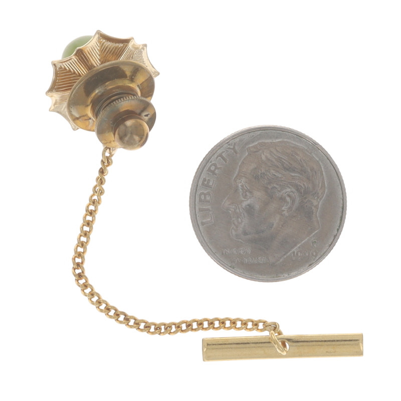 Yellow Gold Nephrite Jade Vintage Men's Tie Pin Lapel - 14k Solitaire Tie Tack