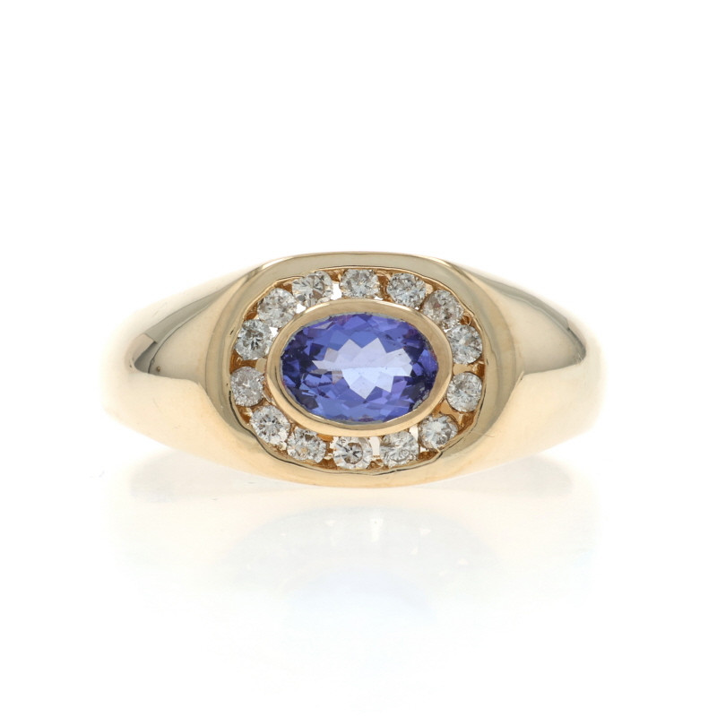 Yellow Gold Tanzanite Diamond Men's Ring - 14k Oval 1.05ctw