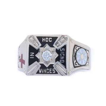 White Gold Knights Templar Vintage Men's Ring - 14k Dia .10ct York Rite Masonic