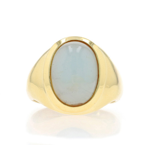 Yellow Gold Beryl Men's Ring - 18k Oval Cabochon 5.46ct Solitaire