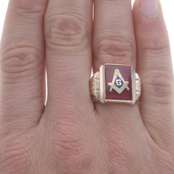 Yellow Gold Blue Lodge Men's Master Mason Ring - 10k Blue Enamel Masonic