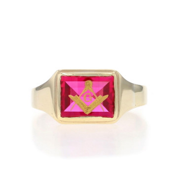 Yellow Gold Blue Lodge Vintage Men's Master Mason Ring - 10k Lab-Created Ruby