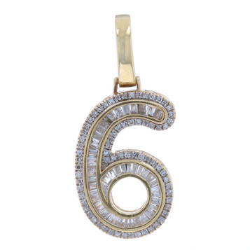 Yellow Gold Diamond Number Six Men's Pendant 10k Single Bag.45ctw Lucky #6 Bling