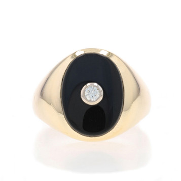 Yellow Gold Diamond & Onyx Men's Ring - 14k Round Brilliant