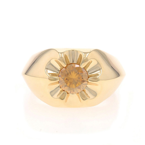 Yellow Gold Fancy Brown Moissanite Men's Ring 10k Rd 1.30ct Knife-Edge Solitaire