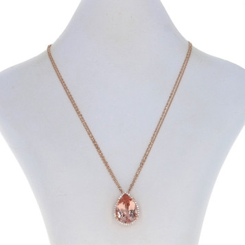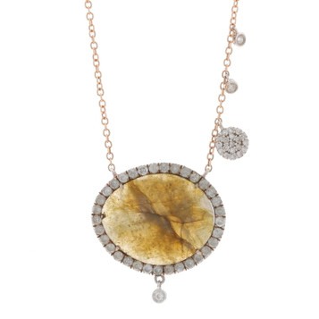 Meira T Labradorite Diamond Halo Pendant Necklace 16" - Rose Gold 14k 925 Oval