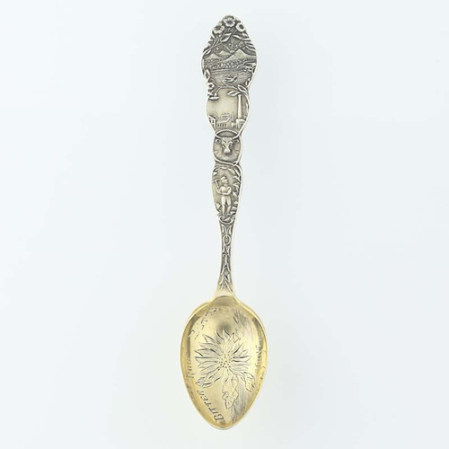 Montana Souvenir Spoon - Sterling Silver Gold Wash Bitter Root Butte Figural