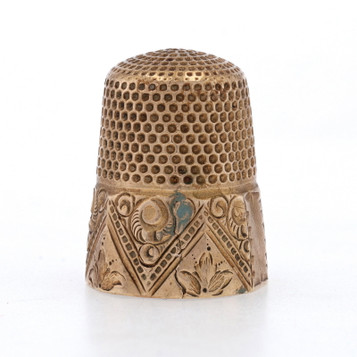 Gold Filled Antique Grapevine Thimble - May Monogram Sewing Tool Size 8