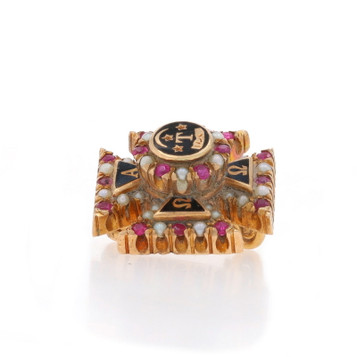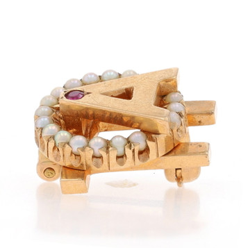 Beta Sigma Omicron Badge Rare 14k White Gold Sorority Zeta Tau Alpha Ruby Pearl