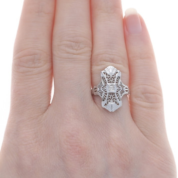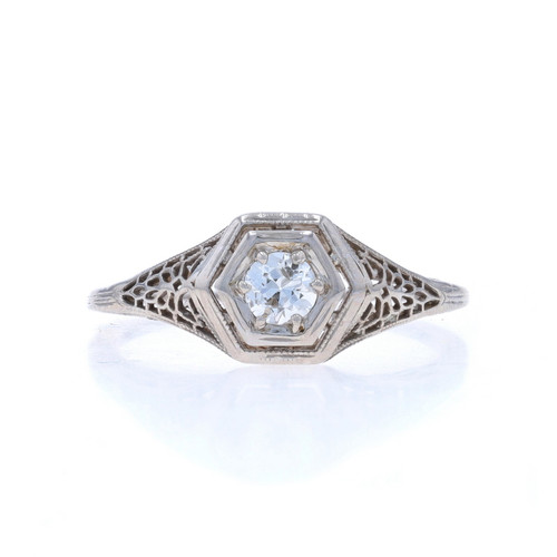 White Gold Diamond Art Deco Solitaire Ring - 18k European .28ct Filigree