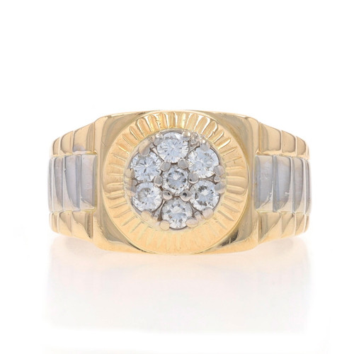 Yellow Gold Diamond Cluster Men's Ring - 14k Round Brilliant .50ctw