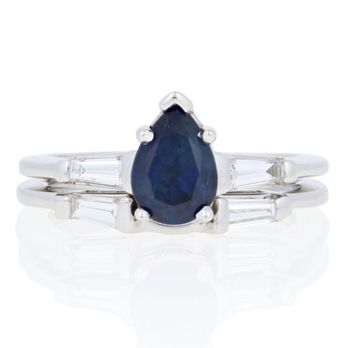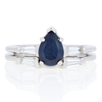 1.87ctw Pear Cut Sapphire & Diamond Engagement Ring & Wedding Band 14k Gold Set