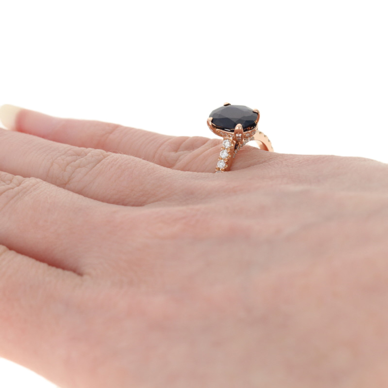 2.96ctw Oval Cut Sapphire & Diamond Ring - 18k Rose Gold Cathedral Engagement