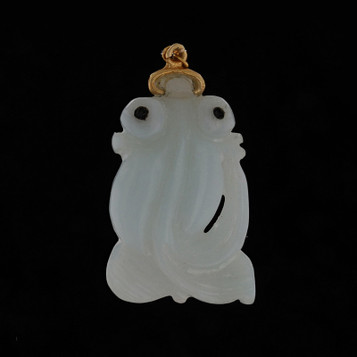 Carved Jadeite Pendant - 14k Yellow Gold Botanical Design